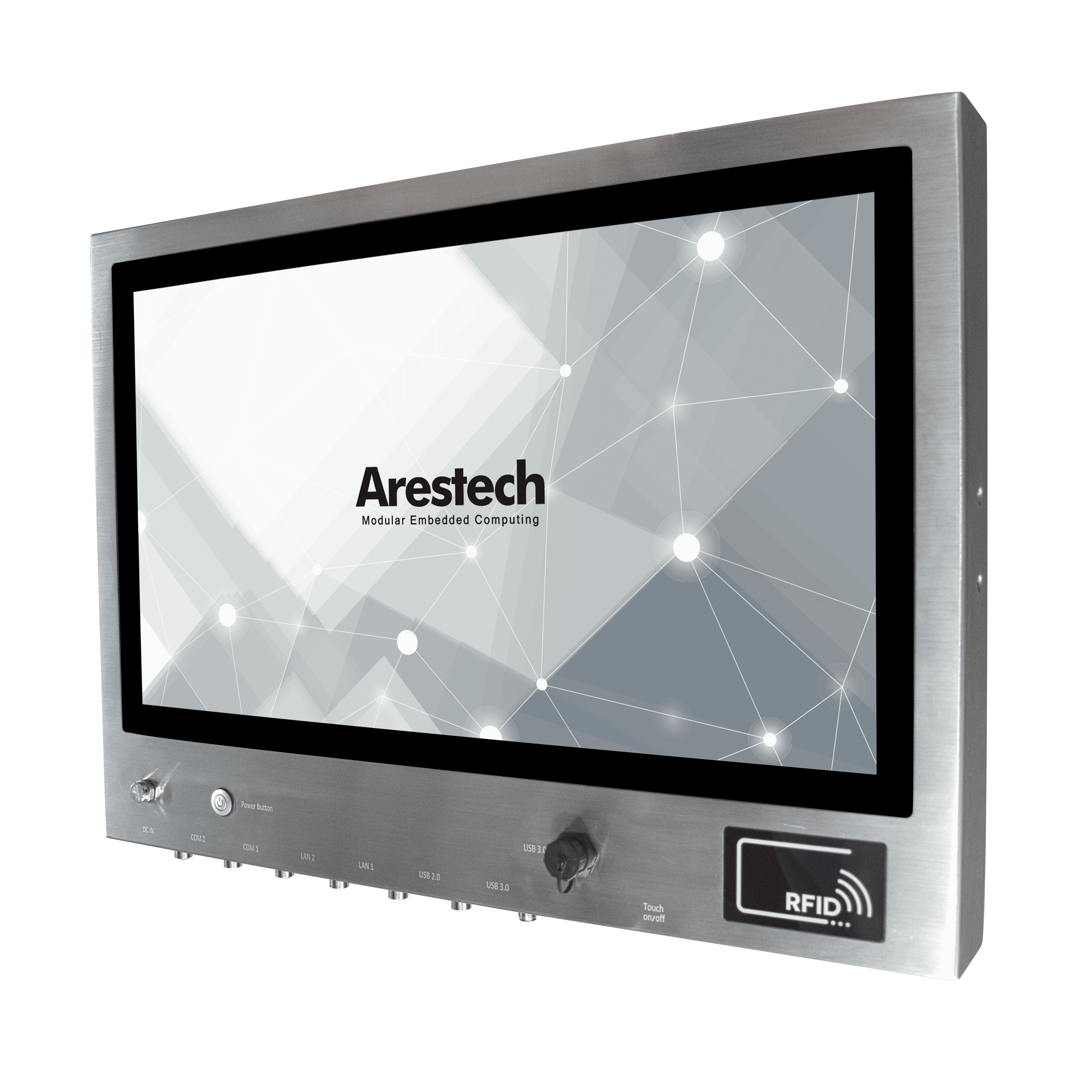 24" 16:9 (1920 x 1080) FHD, 300nits, 5-wire Resistive Touch, Full Stainless Steel 304, Intel® Core™ i5-1235U, 1 x IP67 Front USB3.2, M12 Connectors (2 x 2.5GbE, 2 x RS-232/422/485, 1 x USB3.2, 1 x USB2.0 (x2), 9~36VDC), RFID Reader
